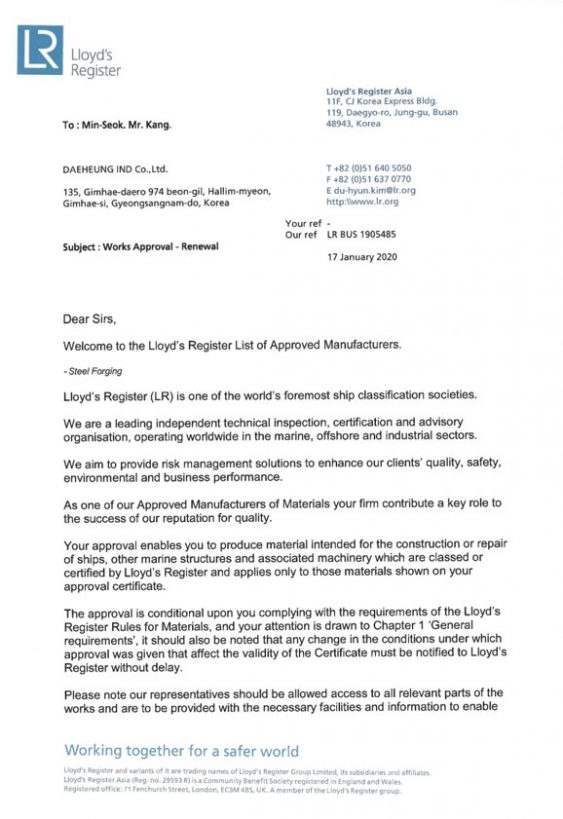 | Lloyd | Steel Forgings | Llod's Register | December 2, 2013 |